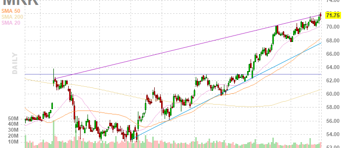 We zien neerwaartse kansen in de farmaceutical Merck (Tickersymbol: MRK) dat een marketcap heeft van ruim $189 miljard en een dividendrendement van ongeveer 2,7%.
